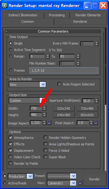 de calidad mínima cuando la convirtamos (compresión de frames) a los formatos de vídeo más usados. El Tamaño de los cuadros lo vamos a definir en la pestaña Rendering - rendering setup con una resolución estándar de calidad DVD con y unas dimensiones de 720x486 píxeles.