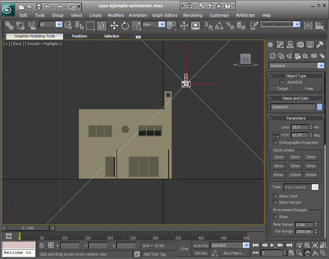 Ahora tenemos colocada la cámara en el inicio de nuestra animación.